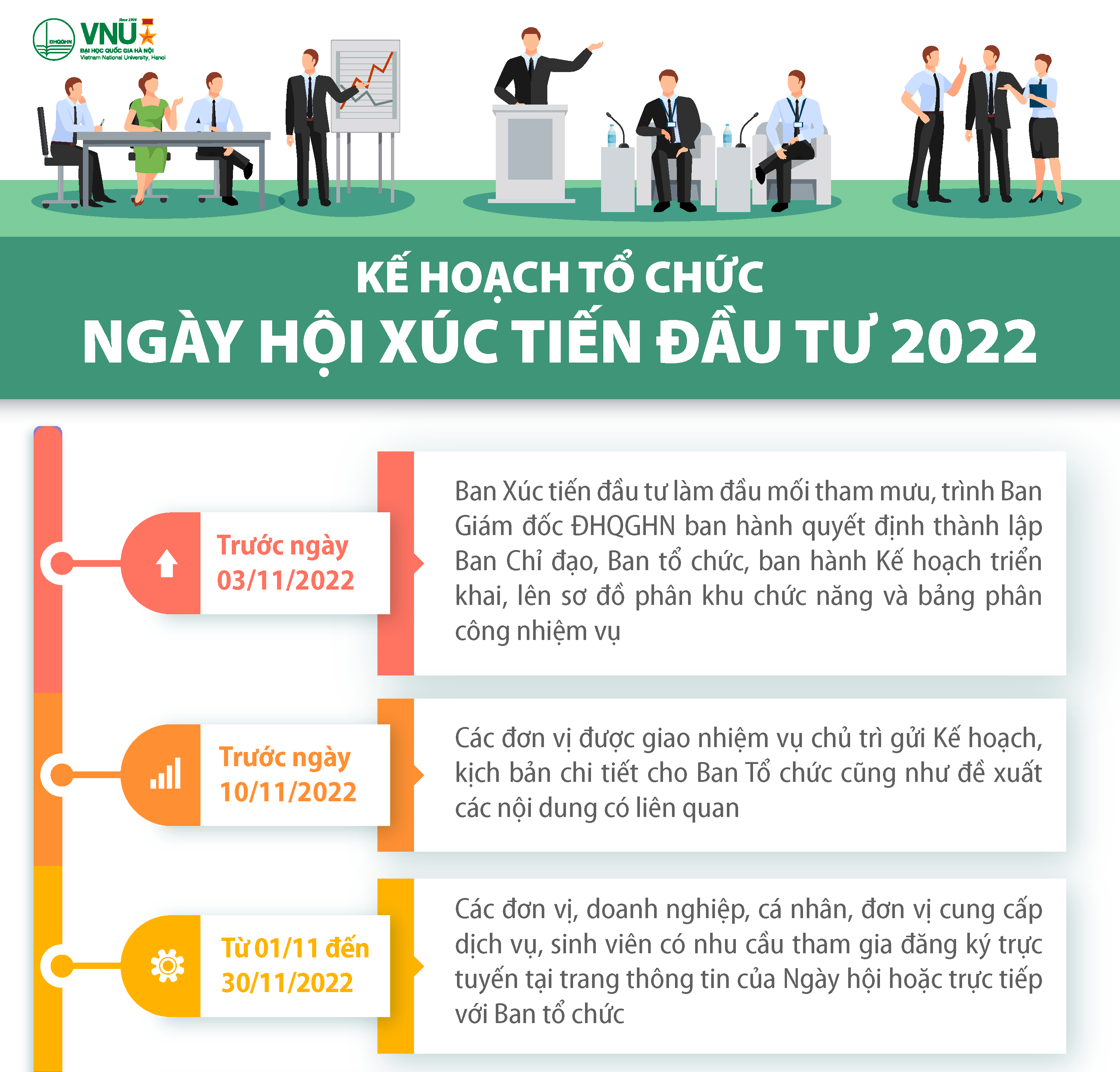 Nhằm thu hút các nguồn lực phát triển Khu đô thị ĐHQGHN tại Hòa Lạc đáp ứng yêu cầu học tập, nghiên cứu theo chỉ đạo của Thủ tướng Chính phủ, ĐHQGHN tổ chức Ngày hội Xúc tiến đầu tư năm 2022 với nhiều hoạt động, dự kiến thu hút khoảng 10.000 người tham dự.