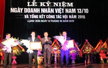 Sáng 12/10/2015, tại UBND thành phố Lạng Sơn, Hiệp hội Doanh nghiệp tỉnh đã tổ chức kỷ niệm ngày Doanh nhân Việt Nam lần thứ XI (13/10/2004 – 13/10/2015). Dự buổi lễ có đồng chí Trương Hùng Anh, Phó Chủ tịch HĐND tỉnh; đồng chí Nguyễn Văn Bình, Phó Chủ tịch Thường trực UBND tỉnh.