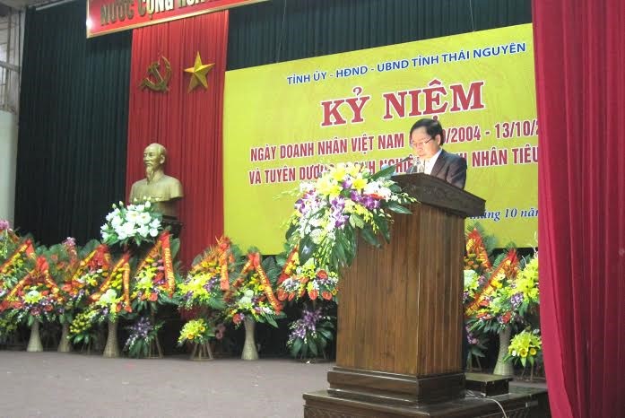 Chiều ngày 12/10/2015, tại UBND tỉnh Thái Nguyên đã diễn ra Lễ kỷ niệm 11 năm Ngày Doanh nhân Việt Nam (13/10/2004 - 13/10/2015). Đến dự Lễ kỷ niệm có các đồng chí lãnh đạo Tỉnh Ủy, HĐND, UBND tỉnh và đại diện các tổ chức Hội doanh nghiệp trên địa bàn.