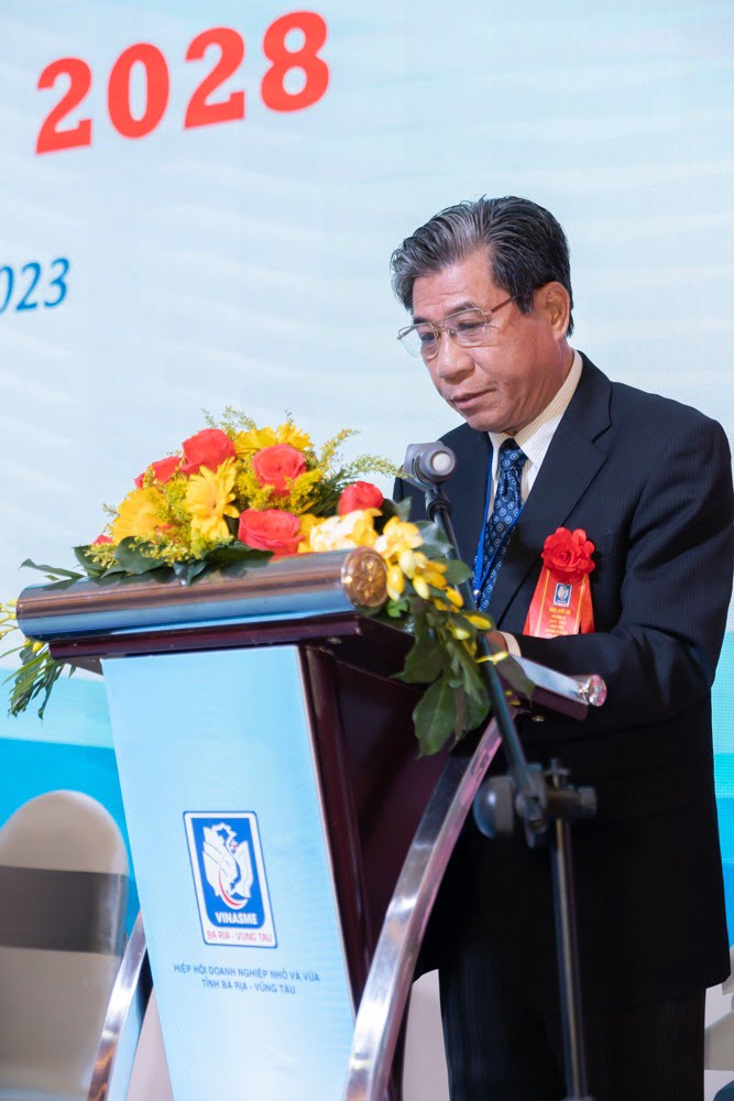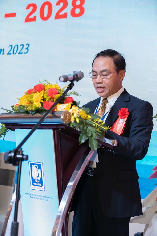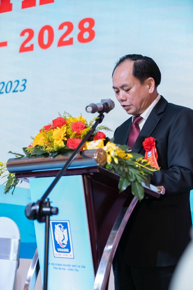 Ông Phạm Văn Triêm được bầu làm Chủ tịch Hiệp hội doanh nghiệp nhỏ và vừa tỉnh Bà Rịa – Vũng Tàu lần III Nhiệm kỳ 2023-2028 phát biểu bế mạc tại Đại hội
