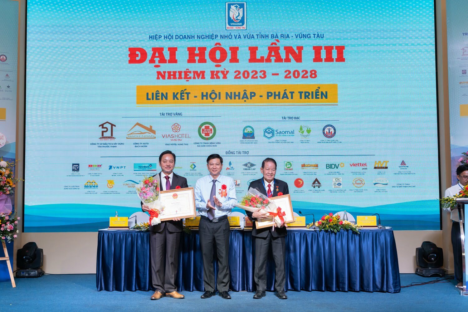 Tại Đại hội Tiến sỹ Cao Sỹ Kiêm, nguyên UV BCH TW Đảng, nguyên Thống đốc Ngân hàng nhà nước VN, nguyên Chủ tịch – Chủ tịch danh dự Hiệp hội DN nhỏ và vừa Việt Nam; Tiến sỹ Nguyễn Văn Thân, Đại Biểu quốc hội khóa XIV, khóa XV, Chủ tịch Hiệp hội DN nhỏ và vừa Việt Nam trao kỉ niệm chương TW Hội cho các Lãnh đạo tỉnh Bà Rịa – Vũng Tàu vì sự nghiệp phát triển doanh nghiệp nhỏ và vừa.