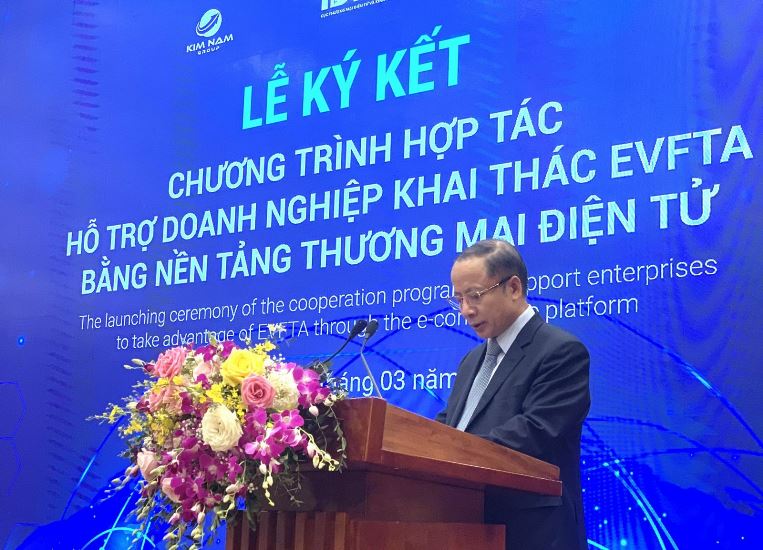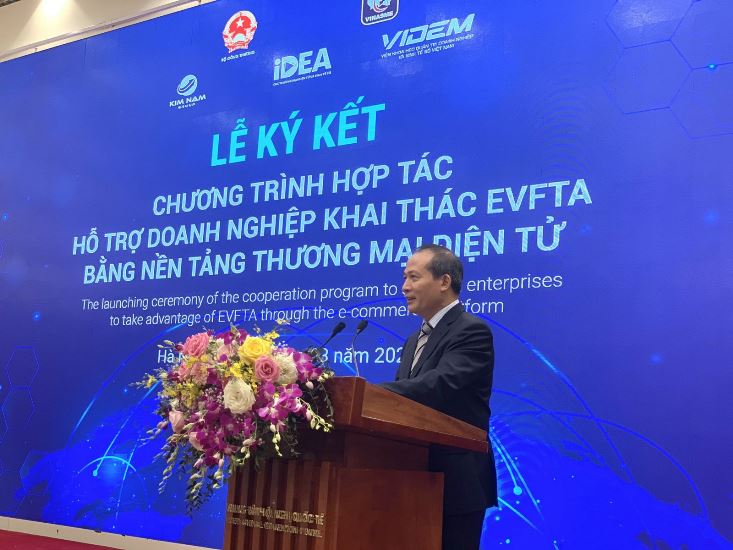 (VINASME) - Ngày 26/3, Viện Khoa học Quản trị Doanh nghiệp và Kinh tế số Việt Nam (VIDEM) cùng Cục Thương mại Điện tử và Kinh tế số - Bộ Công Thương (IDEA) và Kim Nam Group cùng triển khai chương trình hợp tác hỗ trợ doanh nghiệp khai thác EVFTA bằng nền tảng thương mại điện tử.