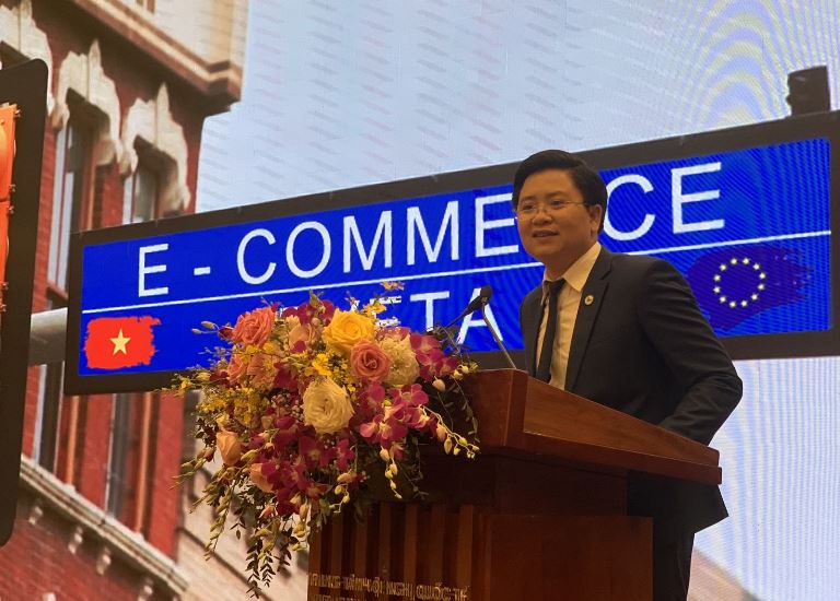 Thay mặt Hiệp hội Doanh nghiệp nhỏ và vừa Việt Nam, TS, Nguyễn Văn Thân đánh giá rất cao tinh thần phối hợp nhanh chóng và có hiệu quả của Cục Thương mại Điện tử, Bộ Công Thương và Viện Khoa học quản trị Doanh nghiệp và Kinh tế số Việt Nam trong việc triển khai các nhiệm vụ, giải pháp nhằm thúc đẩy thực thi Hiệp định EVFTA mà chúng ta đã và đang đạt được những kết quả hết sức tích cực.