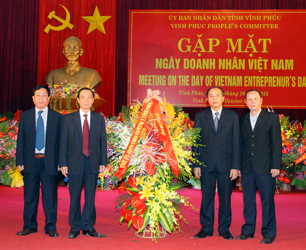 (VPSME) - Sáng ngày 12/10 tại hội trường, trường Chính trị tỉnh Vĩnh Phúc UBND tỉnh, Hiệp hội Doanh nghiệp tỉnh tổ chức gặp mặt các doanh nhân, doanh nghiệp nhân dịp kỷ niệm 70 năm ngày Doanh nhân Việt Nam (13/10/1945 - 13/10/2015).