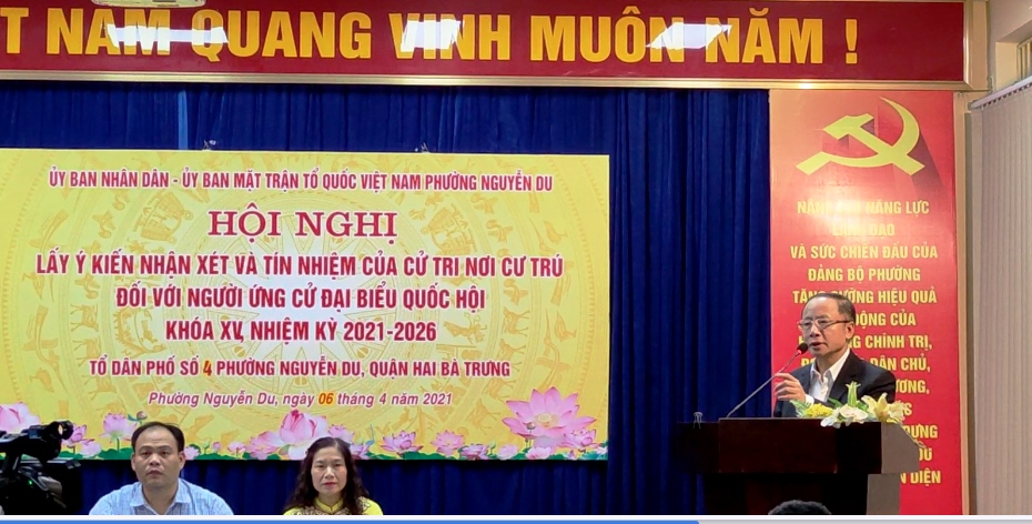 DNHN – Tối 6/4, Ban Thường trực Ủy ban MTTQ Việt Nam phối hợp với UBND phường Nguyễn Du, quận Hai Bà Trưng, Hà Nội tổ chức Hội nghị lấy ý kiến nhận xét của cử tri nơi cư trú đối với ông Nguyễn Văn Thân – Đại biểu Quốc hội khóa 14, Ủy viên Ủy ban Kinh tế Quốc hội khóa 14, Ủy viên Đoàn Chủ tịch Ủy ban Trung ương MTTQ Việt Nam; Phó Chủ tịch Hội đồng Tư vấn Cải cách Thủ tục Hành chính của Thủ tướng Chính phủ, Phó Chủ tịch Hội Hữu nghị Việt Nam – Ba Lan; Chủ tịch Hiệp hội Doanh nghiệp nhỏ và vừa Việt Nam.