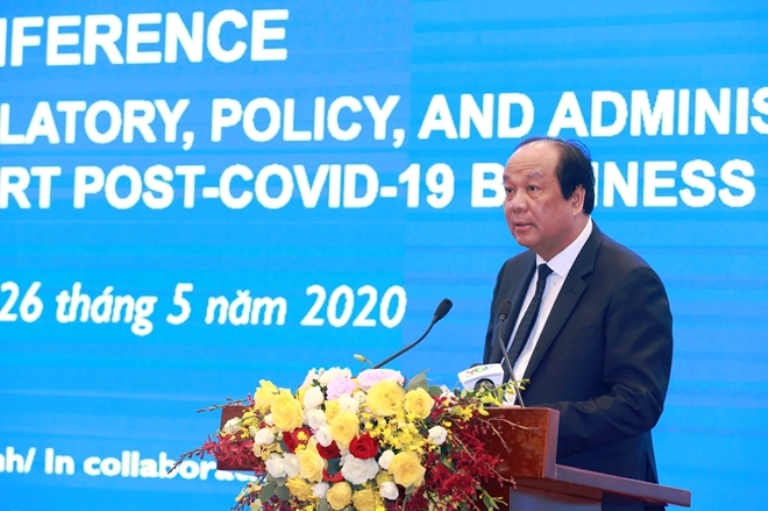 Bộ trưởng Mai Tiến Dũng khẳng định, để kịp thời ứng phó với đại dịch COVID-19, cũng như chia sẻ khó khăn, đảm bảo cuộc sống của người dân lao động, Chính phủ, Thủ tướng Chính phủ đã chỉ đạo thực hiện nhiều giải pháp để tháo gỡ khó khăn cho sản xuất kinh doanh, an ninh lương thực, thúc đẩy giải ngân vốn đầu tư công, đảm bảo an sinh xã hội; tiếp tục cắt giảm thủ tục hành chính, điều kiện kinh doanh, sản phẩm hàng hóa kiểm tra chuyên ngành và chuyển đổi phương thức làm việc của các cơ quan hành chính Nhà nước theo hướng điện tử hóa phi giấy tờ, ứng dụng công nghệ thông tin.
