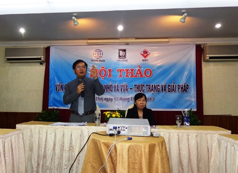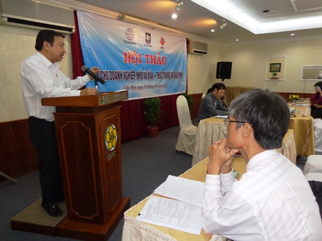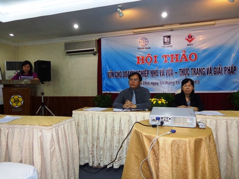 (VINASME) - Ngày 15/11/2013, tại Cần Thơ, Hiệp hội Doanh nghiệp nhỏ và vừa (DNNVV) Việt Nam phối hợp với Hiệp hội DN TP Cần Thơ tổ chức Hội thảo với chủ đề “Vốn cho DN NVV – Thực trạng và giải pháp”. Ông Tô Hoài Nam - Phó Chủ tịch kiêm Tổng Thư ký Hiệp hội DNNVV Việt Nam và bà Nguyễn Mỹ Thuận – Phó Chủ tịch Hiệp hội DN TP. Cần Thơ chủ trì Hội thảo.