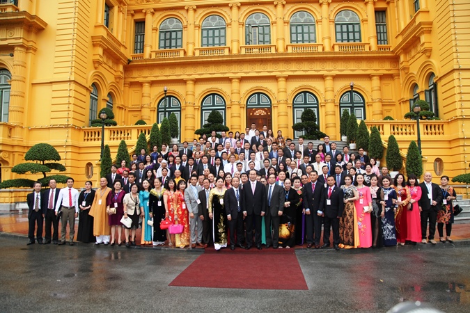 Chiều 25/10, tại Phủ Chủ tịch, nhân dịp kỷ niệm 12 năm Ngày Doanh nhân Việt Nam, Đoàn đại biểu doanh nghiệp nhỏ và vừa tiêu biểu do đồng chí Nguyễn Văn Thân - Chủ tịch Hiệp hội Doanh nghiệp nhỏ và vừa Việt Nam làm trưởng đoàn đã diện kiến Chủ tịch nước Trần Đại Quang.