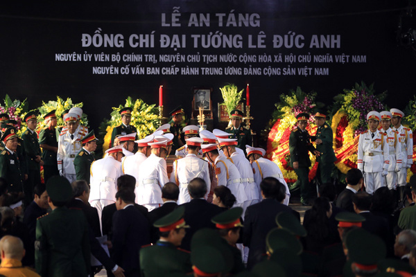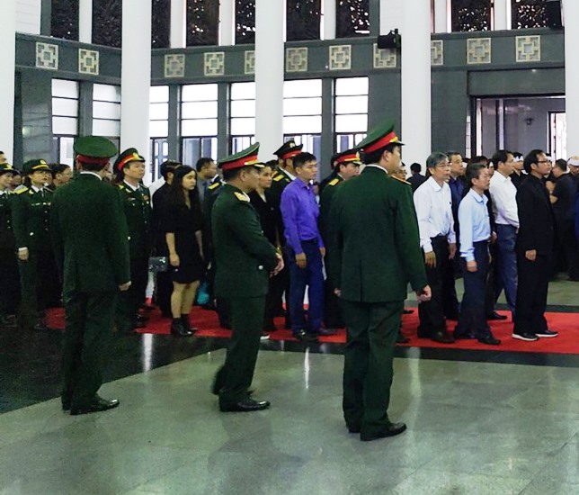 Phó Chủ tịch Thường trực kiêm Tổng Thư ký Tô Hoài Nam dẫn đầu đoàn dâng hương lễ viếng Nguyên Chủ tịch nước, Đại tướng Lê Đức Anh. (Ảnh: Thế Hiển).
