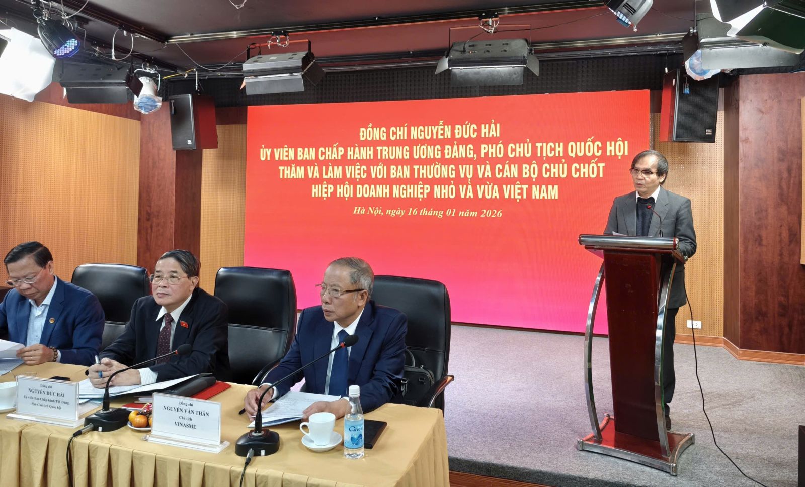(VINASME) – Ngày 16/01/2026 tại trụ sở Hiệp hội, đồng chí Nguyễn Đức Hải - Ủy viên Ban Chấp hành Trung ương Đảng, Phó Chủ tịch Quốc hội đến thăm và làm việc với Ban Thường vụ và cán bộ chủ chốt Hiệp hội Doanh nghiệp nhỏ và vừa Việt Nam.