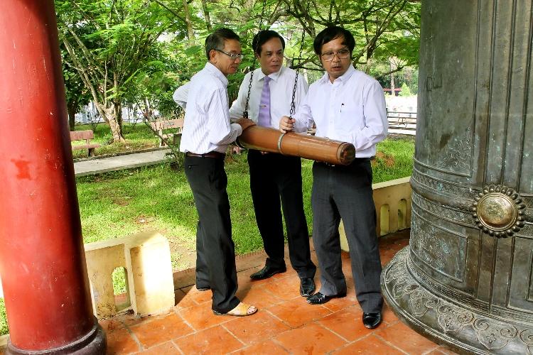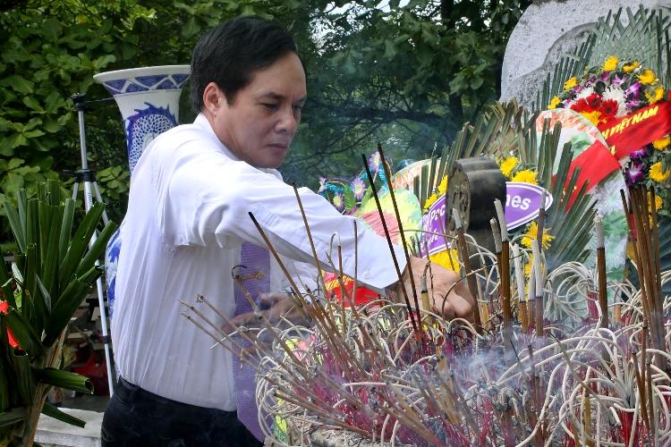 Đồng chí Lê Bá Trình - Phó Chủ tịch Ủy ban Trung ương Mặt trận Tổ quốc Việt Nam và đồng chí Tô Hoài Nam - Phó Chủ tịch kiêm Tổng Thư ký Hiệp hội DNNVV Việt Nam thỉnh 9 hồi chuông viếng anh linh các Anh hùng liệt sỹ.