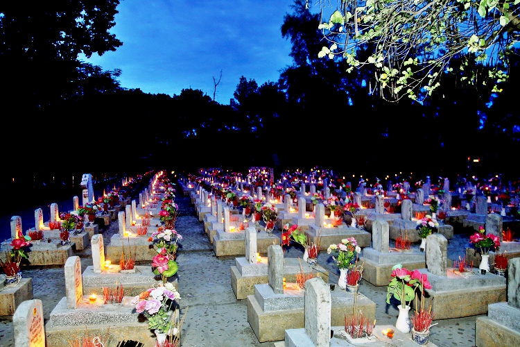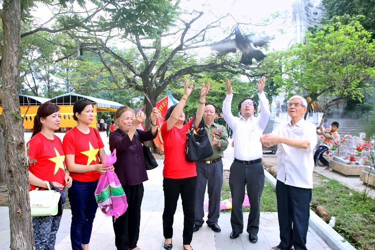 Để tưởng nhớ công lao to lớn và sự hy sinh của các Anh hùng liệt sỹ vì sự nghiệp đấu tranh giải phóng dân tộc, thống nhất đất nước, với đạo lý “Uống nước nhớ nguồn”, các đại biểu đã tổ chức dâng hoa, dâng hương và dâng lá cờ Tổ quốc dài 11m, rộng 7m, cùng 5 chân hương được rước từ Lăng Bác Hồ vào với các anh hùng liệt sỹ an nghỉ tại Nghĩa trang liệt sĩ Trường Sơn. Đoàn đã kính cẩn nghiêng mình trước anh linh các Anh hùng liệt sỹ đang an nghỉ tại Nghĩa trang để tỏ lòng tôn kính và tổ chức lễ cầu siêu tại Nghĩa trang với mục đích cầu cho quốc thái dân an, hoà bình thế giới, nguyện cầu an lành cho tất cả các anh linh, khấn nguyện các anh linh phù hộ độ trì cho những người đang sống được mọi điều tốt lành trong việc dựng xây và giữ gìn đất nước, mọi nhà, mọi người có cuộc sống no ấm, hạnh phúc. Tiếp đó, Đoàn đã tiến hành thắp nến và hương lên tất cả 10.263 phần mộ của các Anh hùng liệt sỹ tại Nghĩa trang Trường Sơn.