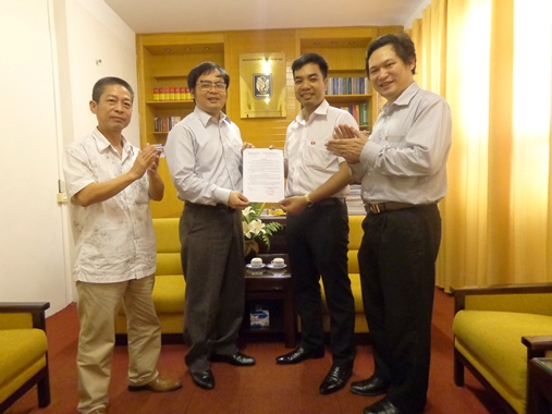 Đồng chí Tô Hoài Nam – Phó Chủ tịch kiêm Tổng Thư ký và đống chí Nguyễn Văn Từ - Chánh Văn Phòng Hiệp hội DNNVV Việt Nam trao Quyết định số: 80/QĐ-BTV ngày 10 tháng 4 năm 2014 về việc công nhận thành viên cho đồng chí Mạc Quốc Anh – Phó Chủ tịch kiêm Tổng Thư ký Hiệp hội các DNVVN TP. Hà Nội.