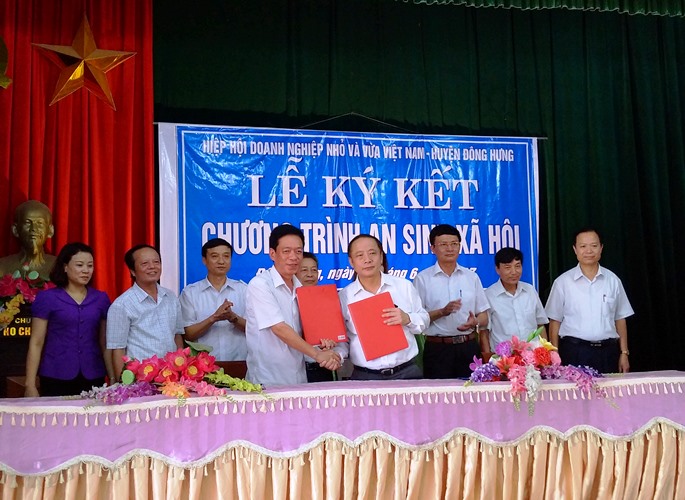 Tiếp nối việc triển khai chương trình hợp tác an sinh xã hội tại tỉnh Thái Bình, sáng 23/6, Hiệp hội Doanh nghiệp nhỏ và vừa Việt Nam đã làm lễ ký kết hợp tác với huyện Đông Hưng, tiến hành hỗ trợ 05 ngôi nhà cho các gia đình thuộc đối tượng hộ nghèo, người có công trên địa bàn.