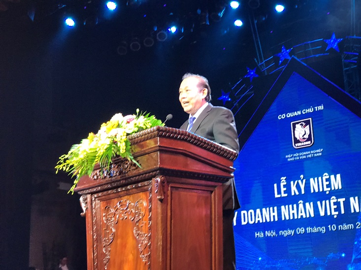 Đến dự và phát biểu chỉ đạo tại buổi lễ, đồng chí Trương Hòa Bình - Ủy viên Bộ Chính trị - Phó Thủ tướng Thường trực Chính phủ đã chúc mừng những thành tích đạt được và những đóng góp quan trọng của Hiệp hội Doanh nghiệp nhỏ và vừa Việt Nam nói riêng và cộng đồng doanh nghiệp, doanh nhân nói chúng vào sự phát triển đất nước. Phó Thủ tướng Thường trực Chính phủ tin rằng, với phẩm chất năng động, sáng tạo, tự lực tự cường, tinh thần vượt khó, của tập thể cán bộ, nhân viên toàn Hiệp hội và cộng đồng doanh nghiệp và doanh nhân Việt Nam sẽ có đủ bản lĩnh để giành được những thành công trong thời gian tới.