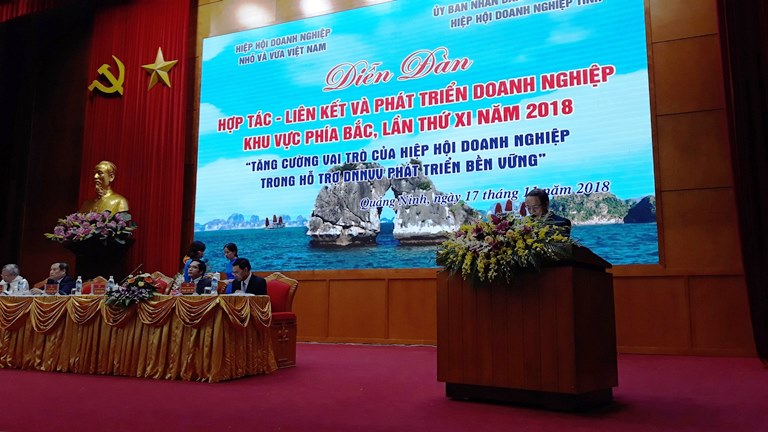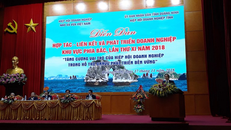 (VINASME) - Ngày 17/11/2018, tại thành phố Hạ Long, tỉnh Quảng Ninh, Hiệp hội Doanh nghiệp nhỏ và vừa Việt Nam phối hợp với Ủy ban nhân dân tỉnh Quảng Ninh, Hiệp hội tỉnh Quảng Ninh tổ chức Diễn đàn “Hợp tác - Liên kết và Phát triển doanh nghiệp khu vực phía Bắc, lần thứ XI, năm 2018”.