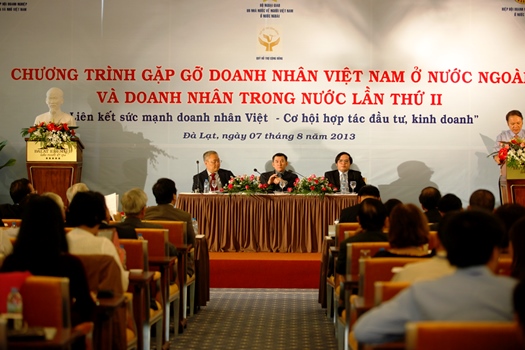 (VINASME) - Sáng nay 07/8/2013 tại thành phố Đà Lạt tỉnh Lâm Đồng, Hiệp hội Doanh nghiệp nhỏ và vừa (DNNVV) Việt Nam, Ủy ban Nhà nước về người Việt Nam ở nước ngoài – Bộ Ngoại giao phối hợp với UBND tỉnh Lâm Đồng, Hiệp hội DNNVV tỉnh Lâm Đồng tổ chức Chương trình gặp gỡ doanh nhân Việt Nam ở nước ngoài và doanh nhân trong nước lần thứ II.
