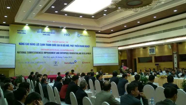 (VINASME) - Sáng 26-3, Tại Trung tâm Hội nghị quốc tế, Hà Nội, Ban Kinh tế Trung ương phối hợp với một số tổ chức đại diện doanh nghiệp cùng Ngân hàng Thế giới tổ chức Hội thảo quốc tế "Nâng cao năng lực cạnh tranh quốc gia và đổi mới, phát triển doanh nghiệp".