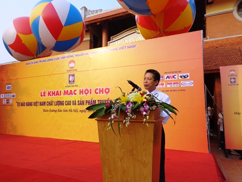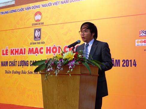 “...Trước tiên, tôi thay mặt BTC Hội chợ Tự hào hàng Việt Nam chất lượng cao và sản phẩm truyền thống 2014, tôi xin nhiệt liệt chào mừng và xin gửi tới các đồng chí lãnh đạo, các đại biểu, khách quý, các cơ quan thông tấn báo chí, các doanh nhân, doanh nghiệp lời chào, lời kính chúc sức khỏe. Chúc cho Hội chợ được thành công rực rỡ”.
