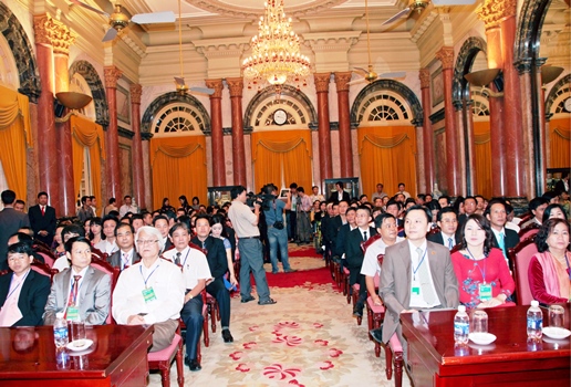 (VINASME) – Sáng ngày 23/7/2013, tại Phủ Chủ tịch, Phó Chủ tịch nước Nguyễn Thị Doan đã tiếp thân mật Đoàn đại biểu doanh nhân doanh nghiệp Top 100 thương hiệu – nhãn hiệu uy tín năm 2013 do Hiệp hội doanh nghiệp nhỏ và vừa (DNNVV) Việt Nam tổ chức.