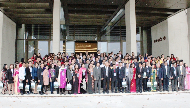 Đồng chí Phó Chủ tịch Quốc hội Uông Chu Lưu chụp hình lưu niệm với đoàn doanh nhân doanh nghiệp tiêu biểu.