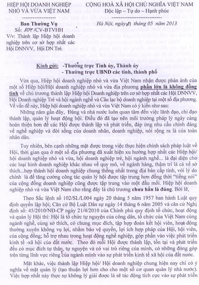 Vinasme xin trích nguyên văn nội dung Công văn số 104/CV-BTVHH