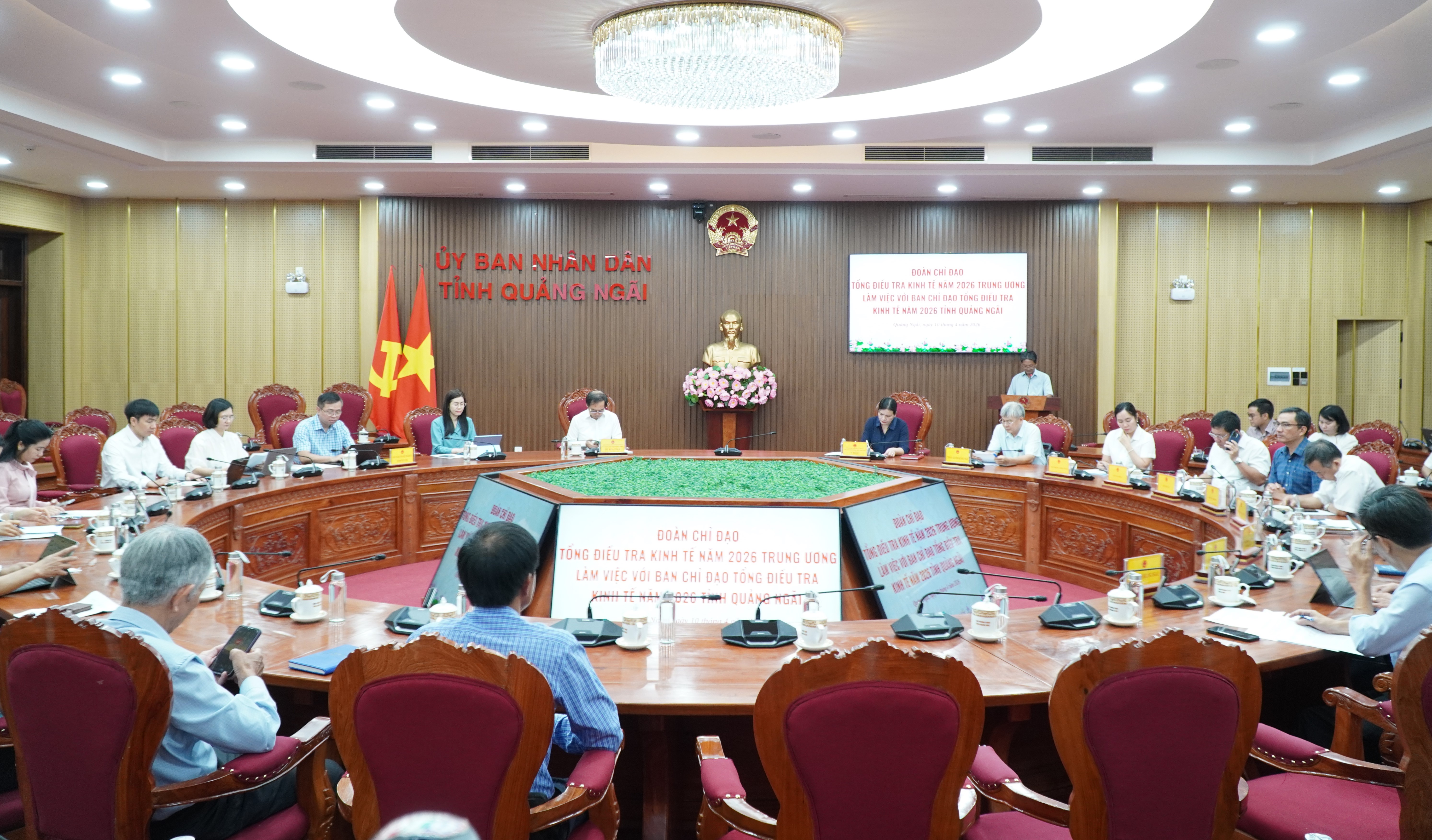 Sáng ngày 10/4/2026, Đoàn Chỉ đạo Tổng điều tra kinh tế năm 2026 Trung ương đã có buổi làm việc với Ban Chỉ đạo Tổng điều tra kinh tế (TĐTKT) năm 2026 tỉnh Quảng Ngãi nhằm đánh giá tiến độ triển khai và kết quả thực hiện trên địa bàn.