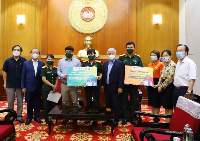 Chủ tịch Đỗ Văn Chiến chứng kiến Công ty Cổ phần Mernus power I trao tặng Bệnh viện Quân y 354 1.600 bộ bảo hộ phòng dịch COVID-19 cấp độ 4.