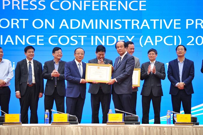 Ghi nhận những đánh giá của tập thể và cá nhân có thành tích xuất sắc trong triển khai hoạt động của Hội đồng tư vấn cải cách thủ tục hành chính giai đoạn 2017-2020, sáng ngày 17/3, tại Họp báo công bố Báo cáo Chỉ số đánh giá chi phí tuân thủ thủ tục hành chính năm 2020 (APCI 2020), chủ tịch Hội đồng, Chủ nhiệm Văn phòng Chính Phủ Mai Tiến Dũng đã trao bằng khen cho tập thể và cá nhân có thành tích xuất sắc trong triển khai hoạt động của hội đồng tư vấn cải cách thủ tục hành chính giai đoạn 2017-2020. Trong đó VINASME và cá nhân TS. Nguyễn Văn Thân – Chủ tịch VINASME đều vinh dự được nhận bằng khen của Bộ trưởng, chủ nhiệm Văn phòng Chính phủ.