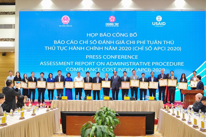 Ghi nhận những đánh giá của tập thể và cá nhân có thành tích xuất sắc trong triển khai hoạt động của Hội đồng tư vấn cải cách thủ tục hành chính giai đoạn 2017-2020, sáng ngày 17/3, tại Họp báo công bố Báo cáo Chỉ số đánh giá chi phí tuân thủ thủ tục hành chính năm 2020 (APCI 2020), chủ tịch Hội đồng, Chủ nhiệm Văn phòng Chính Phủ Mai Tiến Dũng đã trao bằng khen cho tập thể và cá nhân có thành tích xuất sắc trong triển khai hoạt động của hội đồng tư vấn cải cách thủ tục hành chính giai đoạn 2017-2020. Trong đó VINASME và cá nhân TS. Nguyễn Văn Thân - Chủ tịch VINASME đều vinh dự được nhận bằng khen của Bộ trưởng, chủ nhiệm Văn phòng Chính phủ.