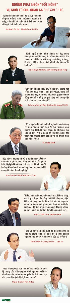 "Tôi làm ăn chân chính, sao lại bị khởi tố hình sự?"; "Đọc thông tin về vụ án, tôi không tin nổi đó là sự thật"; "Vụ án nhỏ xíu như móng tay, không nên tốn nhiều giấy mực"; "Vụ án này chưa xử đã thấy tâm không phục rồi";... - Vụ khởi tố chủ quán cà phê Xin Chào không chỉ nóng vì bản chất vụ việc mà còn "sôi sùng sục" với những phát biểu liên quan.