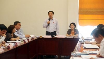 Đồng chí Vương Đình Huệ đề nghị, Luật doanh nghiệp (sửa đổi) lần này phải đánh giá được môi trường kinh doanh, môi trường đầu tư, các quy trình tiếp cận thủ tục kinh doanh giữa các doanh nghiệp trong nước và ngoài nước được đánh giá như thế nào, năng lực cạnh tranh của doanh nghiệp đã tăng bao nhiêu bậc.