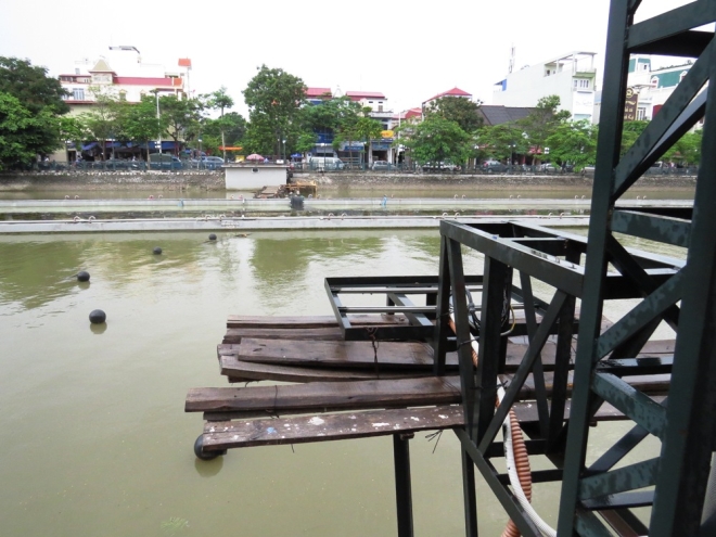 Công trình còn bị cho là đang phá vỡ không gian và cảnh quan của hồ Tam Bạc - địa danh nổi tiếng, góp phần làm nên tên tuổi thành phố Cảng bởi cây cầu tạm bợ, nhếch nhác nối từ bờ hồ ra đài phun nước.