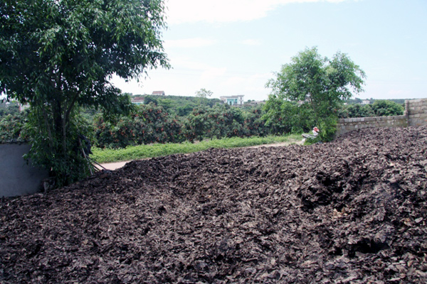 Hiện thì bãi lá vải của anh H. cao gần một mét, chạy dài vài chục mét. Tất cả đều đã bị ủ mục, gần như hoai, giống như bà con nông dân mình vẫn ủ phân xanh để bón cho đồng ruộng.