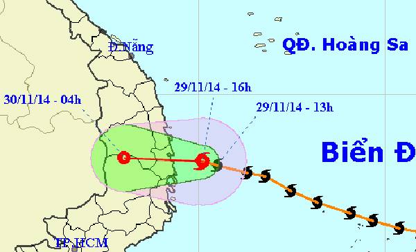 Trong 12 giờ tới, dự báo bão sẽ di chuyển chủ yếu theo hướng Tây, tốc độ 10-15km/h, đi vào Nam Bình Định - Phú Yên. Sau đó suy yếu thành áp thấp nhiệt đới rồi thành vùng áp thấp. Đến 7h sáng 30/11, tâm vùng áp thấp sẽ ở trên biên giới Việt Nam - Capuchia với sức gió giảm dưới cấp 6 (dưới 39km/h)