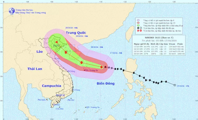Hồi 4h ngày 17/10, vị trí tâm bão ở vào khoảng 16,9 độ Vĩ Bắc; 115,2 độ Kinh Đông, cách quần đảo Hoàng Sa khoảng 320km về phía Đông. Sức gió mạnh nhất ở vùng gần tâm bão mạnh cấp 13 (135-150km/giờ), giật cấp 16.