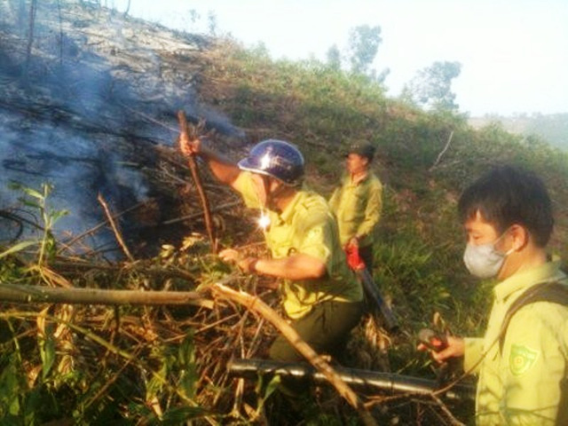 Kiểm lâm Bình Định dập một đám cháy rừng.