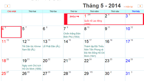 | Lịch nghỉ lễ kéo dài từ 30/4 đến hết 4/5. |
