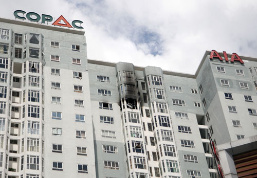 Khoảng 10h, lửa kèm khói cuồn cuộn bốc lên từ tầng 22 block giữa của chung cư Copac Square, sau đó len lỏi vào các căn hộ gần đó khiến mọi người hoảng loạn tháo chạy. "Nghe chuông báo cháy, tôi bế đứa cháu nhỏ chạy bộ xuống đất. Lúc đó, điện đã ngắt, thang máy không còn hoạt động", bà Sáu ngụ ở tầng 20 kể.