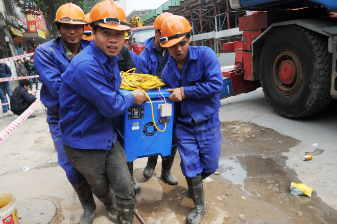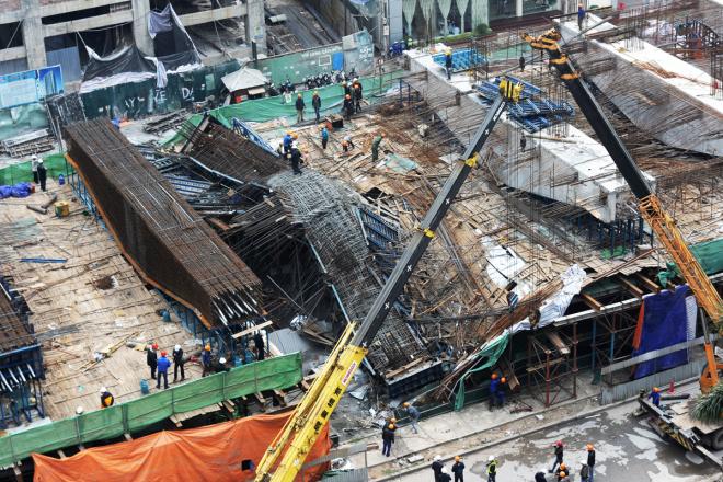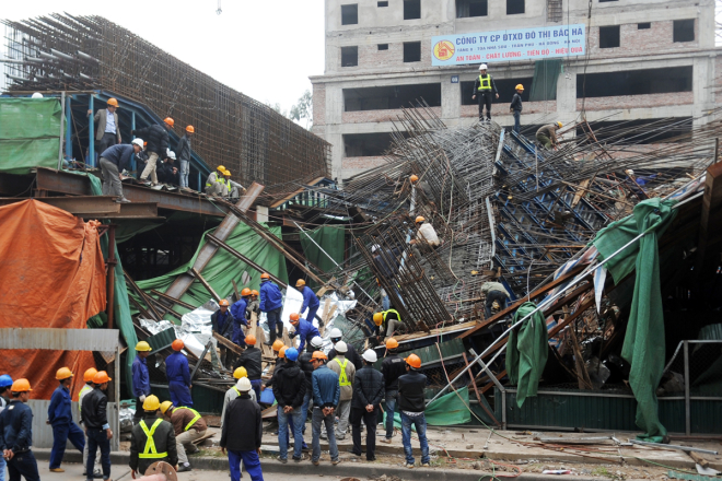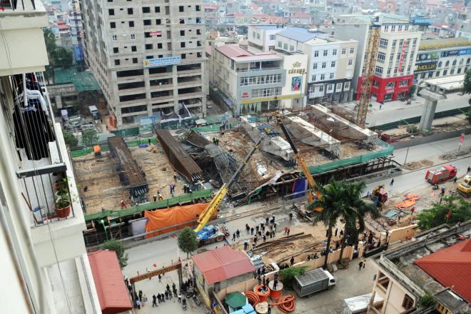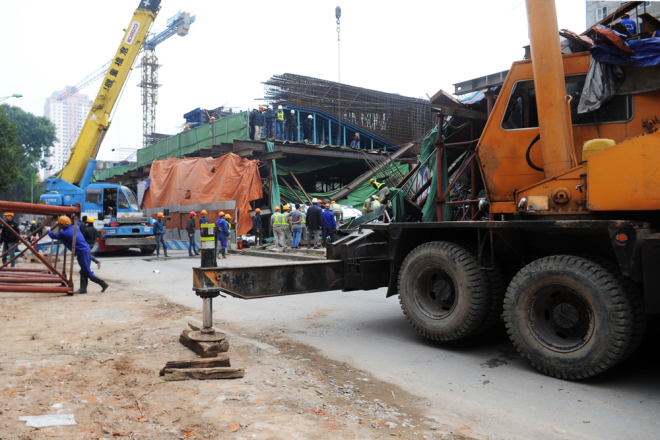Hiện trường vụ sập giàn giáo đường sắt trên cao ở Hà Nội