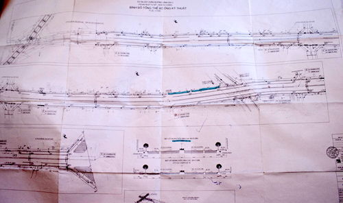 | Bản đồ tổng thể đường ống kỹ thuật cho thấy, đường Trường Chinh bị cong từ ngõ 150, tức là cong về phía Bắc. Ảnh: Bá Đô. |