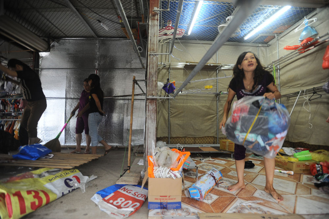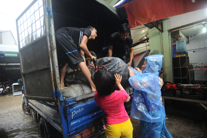 Tại Lạng Sơn, hoàn lưu bão gây mưa lớn. Đề phòng ngập lụt, từ sáng sớm nay người dân chợ Giếng Vuông đã đóng đồ chuyển về nhà. Nhiều người tỏ ra bức xúc với ban quản lý chợ vì phải chạy lụt 2 lần trong năm nay mà không có biện pháp gì khắc phục.
