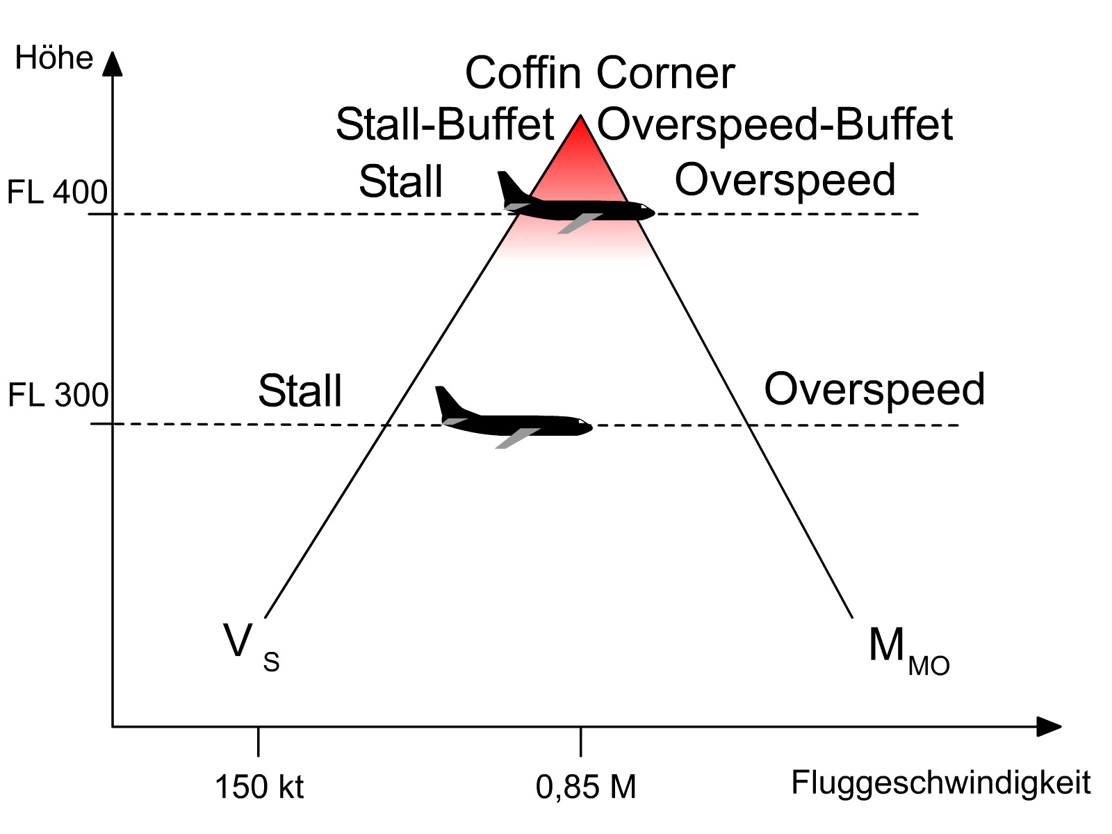 Tại các độ cao lớn, khoảng cách giữa hai thời điểm tốc độ quan trọng này càng thu hẹp dần. Và tại độ cao mà hai thời điểm này gặp nhau, máy bay sẽ mất kiểm soát và cắm đầu xuống biển. Người ta gọi hiện tượng này là “góc quan tài”.