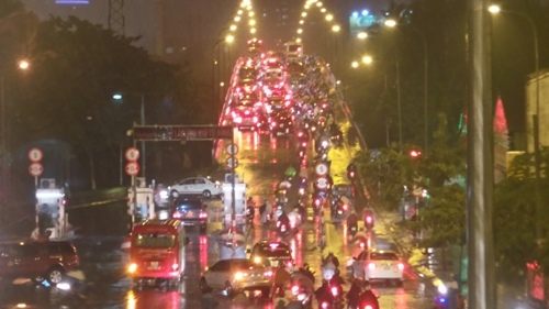 Anh Mạnh Cường, nhân viên công ty V. P tại quận 3, TPHCM kể về đoạn trường 3 giờ đồng hồ để về tới nhà tại quận 7, TPHCM trong cơn mưa chiều tối 15/9 như sau: “Từ cơ quan, tôi mất hơn 1 giờ để nhích từng bước một qua cầu ông Lãnh để sang quận 4.