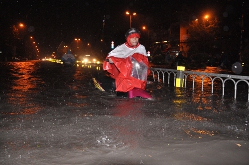 Chị Thanh Dung nhân viên công ty truyền thông T.N tếu táo: “nước ngập lên tới bẹn luôn. Chắc mai đi làm phải mang theo áo bơi, ai tham gia đua thuyền thì đăng ký với mình”