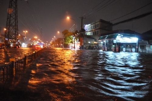 Tương tự, đường Nguyễn Hữu Cảnh (quận Bình Thạnh) tình trạng ngập nước rất nghiêm trọng, kéo dài từ chân cầu Sài Gòn đến gần cầu Thủ Thiêm. Mực nước tại đây có mới lên đến 40-50 cm, có nơi ngập sâu lên đến cả mét.