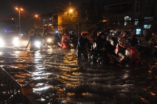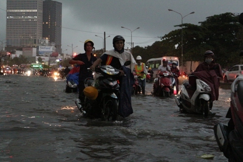 Đường Bạch Đằng (quận Tân Bình) tuyến đường cửa ngõ vào sân bay Tân Sơn Nhất cũng xảy ra ngập nặng. Ở phía trung tâm, tuyến đường huyết mạch Nam Kỳ Khởi Nghĩa kéo dài từ quận 3 tới Phú Nhuận, Tân Bình….cũng kẹt cứng phương tiện, nhích từng bước trong giờ cao điểm vì mưa và ngập.