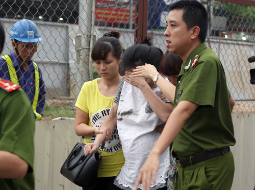 | Chị Nhung sau khi trấn tĩnh lại đã được đưa đi kiểm tra sức khoẻ. Ảnh: Phương Sơn. |