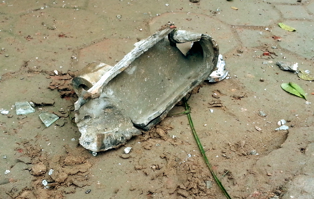 Mảnh kim loại người dân nhặt được cách hiện trường hàng trăm mét, phía sau khu nhà TT20