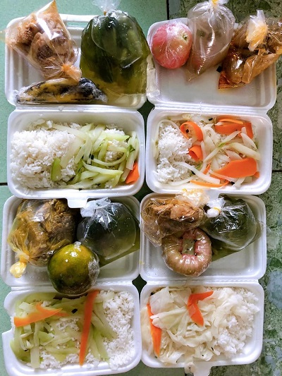 Khẩu phần ăn ba bữa đầy đủ trong một ngày tại khu cách ly